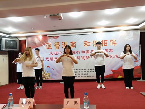 金秋送爽山河美,丹桂飘香庆辉煌。在新中国70周年华诞即将到来之际,贸易金融学院师生在党总支书记赵宏宾的带领下,走进溪南军休所,开展主题为“温馨溪南和谐相伴”——庆祝中华人民共和国成立70周年暨无锡市溪南军休所成立30周年文艺演出。无锡市退役军人事务局领导和军休老干部参加活动。演出中,无锡市退役军人事务局副局长韩富才宣读了《荣获“新中国成立70周年纪念章”军休人员名单通报》,当军休老干部们上台领奖时,师生们热泪盈眶,全场掌声不息,贸金学院学生们给老首长、老战士带来了合唱《明天会更好》,诗歌朗诵《少年中国说》,歌曲《像我这样的人》以及手语舞《中国有我》,展示了2019级新生军训短视频。最后,新生们迈着矫健的步伐高呼:“向老兵敬礼”,全场响起热烈的掌声。