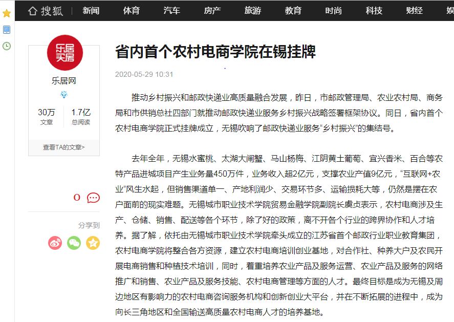 去年全年,无锡水蜜桃、太湖大闸蟹、马山杨梅、江阴黄土葡萄、宜兴香米、百合等农特产品进城项目产生业务量450万件,业务收入超2亿元,支撑农业产值9亿元,“互联网+农业”风生水起,但销售渠道单一、产地利润少、交易环节多、运输损耗大等,仍然是摆在农户面前的现实难题。无锡城市职业技术学院贸易金融学院副院长虞贞表示,农村电商涉及生产、仓储、销售、配送等各个环节,除了好的政策,离不开各个行业的跨界协作和人才培养。据了解,依托由无锡城市职业技术学院牵头成立的江苏省首个邮政行业职业教育集团,农村电商学院将整合各方资源,建立农村电商培训创业基地,对合作社、种养大户及农民开展电商销售和种植技术培训,同时,着重培养农业产品及服务运营、农业产品及服务的网络推广和销售、农业产品及服务技能、农村电商管理等方面的人才。最终目标是成为无锡及周边地区有影响力的农村电商咨询服务机构和创新创业大平台,并在不断拓展的进程中,成为向长三角地区和全国输送高质量农村电商人才的培养基地。