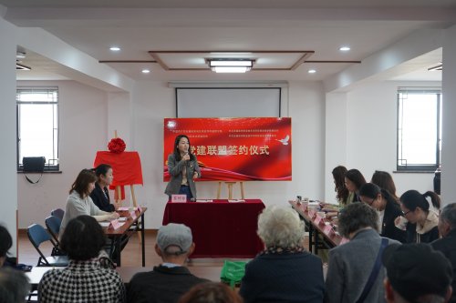 为深入学习习近平新时代中国特色社会主义思想及系列重要讲话精神,落实“牢牢把握大团结大联合”的主题思想,深化党组织共建关系,努力共建“信息互通、阵地联用、活动合办、优势互补、互惠共赢”的党建联盟新格局,不断探索基层党建的新思路和新办法,不断推进党史学习教育走深走实,4月16日上午,贸易金融学院党总支、机关党总支携手崇宁路社区党总支在崇宁路社区举行党建联盟签约仪式。崇安寺街道组织委员陆探微、崇宁路社区党总支书记余懿、党总支副书记沙金兰、贸易金融学院党总支副书记邢丹、机关一支部书记周艳等出席仪式,贸金学生支部支委、机关一支部支委、崇宁路社区党总支党员代表共40余人参加仪式。仪式由崇宁路社区党总支副书记沙金兰主持。