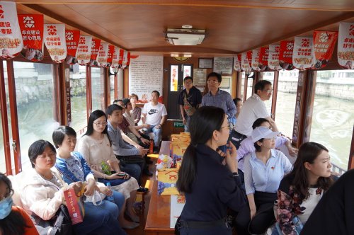 贸金教师乘坐“清名尚和”红色专线游船,参观了“古窑群遗址博物馆”和“祝大椿故居”,深切感受了老一辈民族工商业先驱者“实业救国、勤廉兴邦”的不懈追求和“树清风、扬清名、倡清和”的廉政文化风尚。全体教师在沉浸式参观中既感受江南的水乡风情,又在一砖一瓦、一桥一街中领悟华夏文化的传承,领略现代版的“清明上河图”。