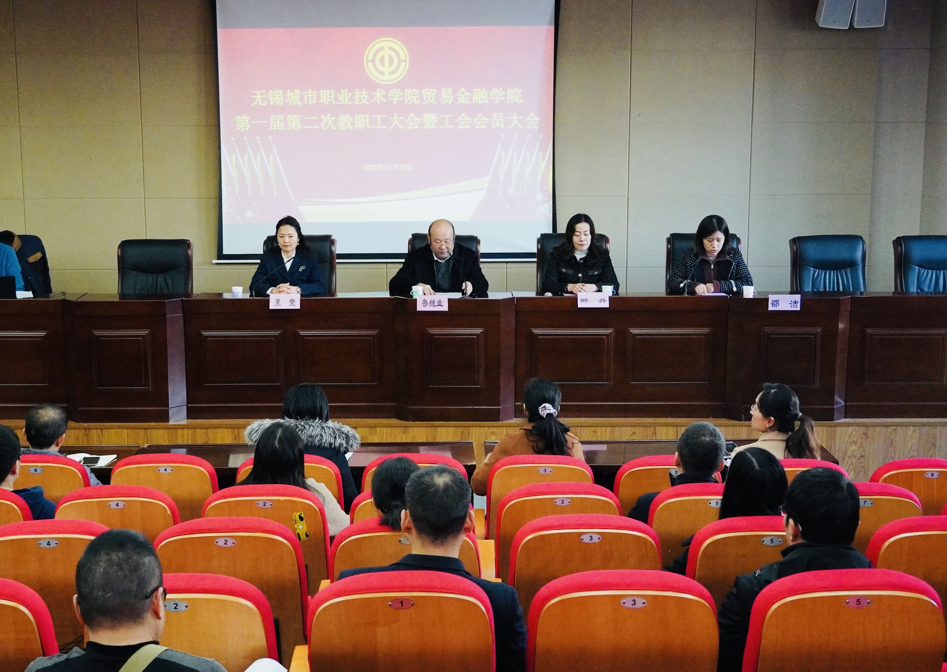 11月24日下午,贸易金融学院一届二次教职工代表大会暨工会会员代表大会在南校区小报告厅隆重召开。校工会副主席鲁继业出席大会,学院党政领导及全体教职工参加会议。会议由贸金学院党政办主任、分工会主席邵洁主持。