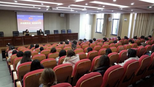 为深入学习贯彻习近平总书记在庆祝中国共产党成立100周年大会上的讲话精神,持续推动党史学习教育在我院扎实开展,11月24日下午,学校“党史宣讲团”成员孙阳受邀为贸易金融学院100名师生作“永远跟党走 奋进新征程”——“七一”重要讲话精神专题宣讲。宣讲会由贸易金融学院党总支副书记邢丹主持。