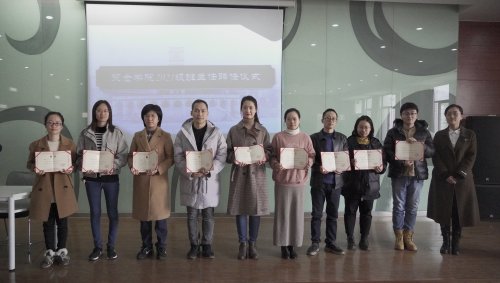 贸金副院长虞贞为9名新生班主任颁发聘书,并举行了新老班主任结对聘任仪式。新班主任代表王小丹发言表示,一定会全面了解班级动态,明确奋斗目标,树立班主任良好形象,加强班级干部队伍建设,严抓课堂纪律,贯彻家校联系制度,加强经验积累,及时形成反思,争取做一名合格称职的班主任。班主任“师傅”代表邰祜山希望新班主任们要做有理想有梦想的班主任,要用实际行动为党育人、为国育才,要真正成为同学的“灵魂导师”。