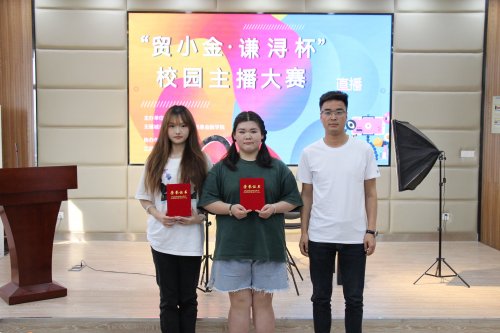 在数字经济背景下,为提升学生直播营销技能,以赛为媒、以赛促学,提升学生互联网思维,锻炼学生直播策划能力、商品推销能力、临场应变能力等综合技能,培育选拔优秀的直播营销人才,4月19日下午,贸易金融学院联合江阴市谦浔传媒有限公司在南校区1501多功能厅举办首届“贸小金·谦浔杯”校园电商主播大赛。本次大赛经过自选产品直播展示环节,从30余名来自各学院的选手中选拔出12位,参加抽选产品模拟直播决赛。最终评选出一等奖1名,二等奖2名,三等奖3名,优胜奖6名。大赛评委由来自谦浔传媒的陈哲总经理、两位副总和包括贸金党总支副书记邢丹、副院长虞贞在内的七位学校评委组成,青高职院财经商贸系主任马宗良作为特邀评委参加评审。
