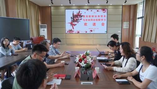 6月7日中午,贸易金融学院在南校区1501会议室举行青海高等职业技术学院挂职学习干部马宗良同志欢送会。校党委书记郁宝荣,校党委委员、组织(统战)部部长林俊同志出席会议,贸金学院全体教职工参加会议。欢送会由院党总支副书记邢丹主持。