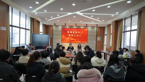 会上,贸金学院副院长虞贞回顾了学院2023年取得的成绩,传达了学校第三届教职工代表大会会议精神,解读了2024年学校中心工作,部署了2024年学院高质量发展重点工作。她指出,2023年学院聚焦内涵建设,锚定指标谋发展,在教学、科研、校企合作等方面取得了一定的成绩。2024年学院将继续推进专业建设,加快落实实训室建设,以各类竞赛作为提升教学质量的关键抓手,优化机制,出标志性成果,建高水平专业。依托校企合作项目,深化产教融合,完善协同机制,确保就业质量。她鼓励全体教师加强学习和创新意识,在今后学校教育改革和岗位竞聘中不断展现自我。
