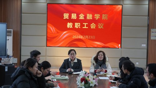 伴随着祥龙迎春的脚步,满载憧憬与希望的新学期如期而至。为科学谋划新学期发展方向,确保各项工作有序开展,2月23日,贸易金融学院召开了2024年新学期全体教职工大会,会议由学院副院长虞贞主持,全体教职工参加会议。