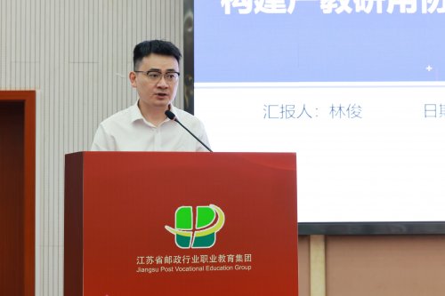 随后,南京邮电大学现代邮政学院院长张学军,我校副校长林俊作为集团院校代表发言。林校长、张院长聚焦邮政职业教育人才培养,向与会人员介绍了学校在构建产教研用协同育人新生态中的做法和经验。
